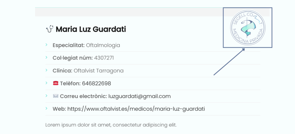 Es un distintivo oficial que ofrece el Colegio de Médicos de Tarragona para identificar a los médicos y médicas que ejercen en el ámbito privado con garantías de calidad, formación y compromiso ético i estan presentes en el CercaDoc (Directorio de Medicina Privada).