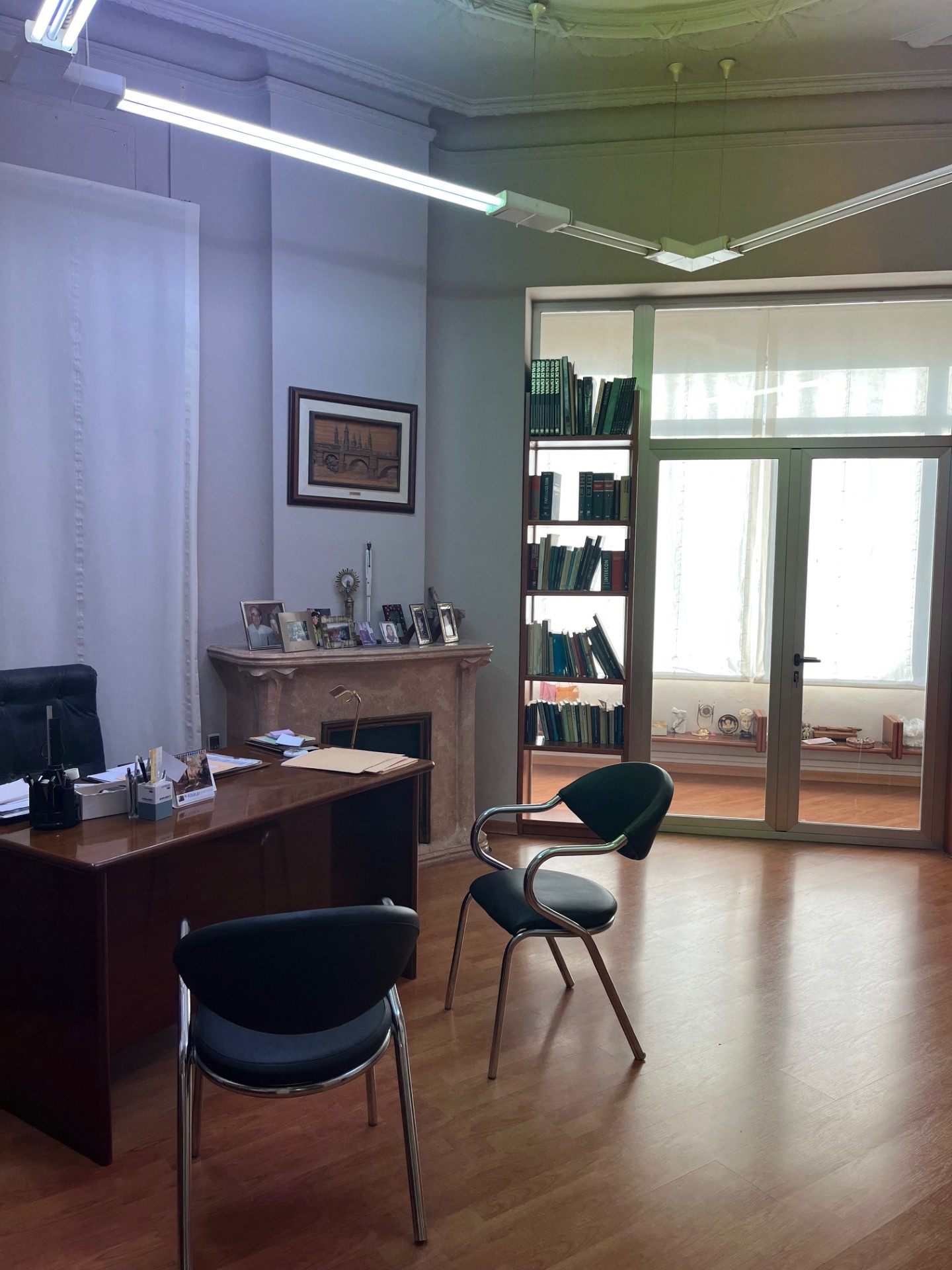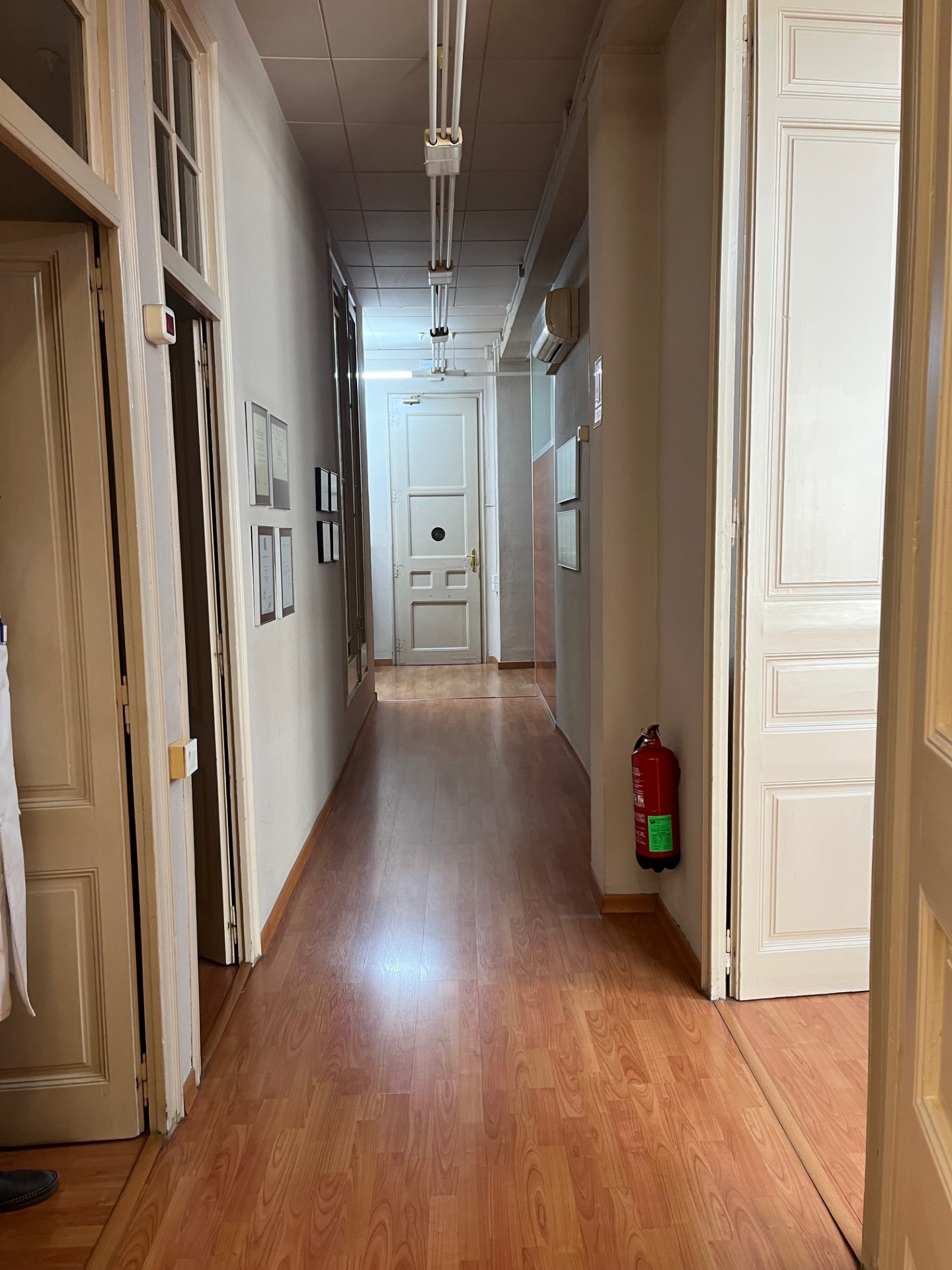 La consulta médica se ubica en un amplio piso de 200 metros cuadrados, actualmente distribuido en siete salas independientes y un espacioso despacho principal. Dispone además de dos baños, una cocina y una cómoda sala de espera para los pacientes. La vivienda destaca por sus techos altos y grandes ventanales, que aportan abundante luz natural y crean un ambiente agradable, luminoso y acogedor, ideal para el desarrollo de la actividad sanitaria.